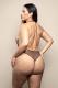 Crotchless halter teddy with plunge neckline, open pearl string back and adjustable pearl g-string in metallic foil mesh