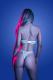 Wide net mesh cut-out bra and strappy panty with rhinestone clasp hardware